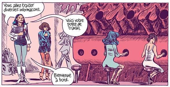 Double hommage à l’univers de Jean-Claude Forest (Barbarella) et à l’emblématique collection des « Histoires fantastiques », qui a marqué chez Dargaud les années 1970, et dont il s’inspire pour la maquette de couverture, Lune l’envers signe le retour de Blutch à la fiction pure. Douze ans après Vitesse moderne (Dupuis, « Aire libre », 2002), le grand prix de la Ville d’Angoulême 2009 compresse l’espace et le temps pour emmêler les destins d’un dessinateur de BD d’âge mur, aigri, épuisé et desséché, Lantz, dont les traits rappellent les siens propres, et d’un junior-éditeur chevelu et passablement excité baptisé… Blütch. Deux doubles en somme.