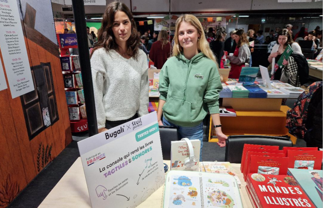 Développée par François Hisquin et Emmanuelle Duez, la console sans écran Bugali adapte les livres de ses éditeurs partenaires pour proposer des expériences tactiles et sonores aux enfants.