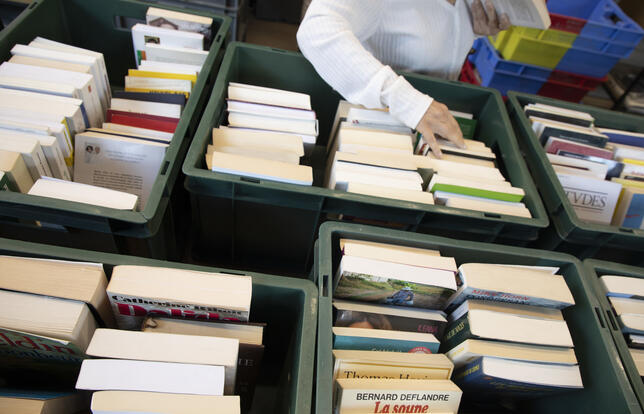 Des bacs à livres d'occasion. - Photo OLIVIER DION