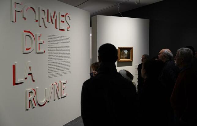 L’exposition s’ouvre sur un tableau du peintre romantique spécialiste ès ruines, Hubert Robert, Vues imaginaire de la Grande Galerie du Louvre en ruines (1796), donnant le « la » de cette véritable symphonie du temps qui passe. Car la ruine convoque autant le passé que l’imaginaire qui se projette dans le futur où l’on regretterait notre temps présent, comme mû par une nostalgie anticipée.
