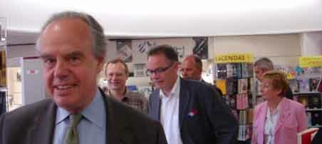 En déplacement à Rodez, Conques et Aurillac (pour le Festival international du théâtre de rue), le ministre de la Culture et de la Communication a rendu visite au principal libraire ruthénois, Benoît Bougerol, par ailleurs président du Syndicat de la librairie française (SLF).