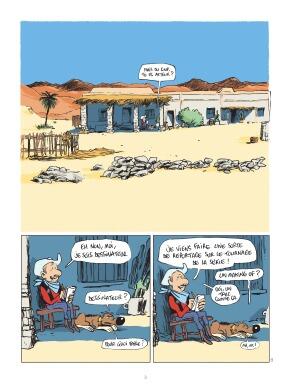 Cowboy fringant. À la manière de Mathieu Sapin qui a rendu compte en BD des coulisses du film Gainsbourg (vie héroïque) de Joann Sfar, Guillaume Bouzard a été invité à raconter le tournage de la série télé Lucky Luke (à venir sur Disney+). Le voilà donc parti en Espagne, dans le désert qui a servi de décor aux westerns spaghettis. Hélas, ce sera en avion puis en voiture et non à cheval, comme il aurait aimé. Heureusement, en BD, tout est permis. Même de porter un costume de cowboy vintage et de discuter avec Rantanplan. Et de ne pas montrer grand-chose du tournage en question si l'on n'a pas envie. Sur la couverture, il fallait donc bien lire le titre à rallonge et la mention discrète en dessous : L'homme qui a vu l'homme qui filme l'homme qui tire plus vite que son ombre (presque journal d'un tournage). Tout est là : revisitant avec bonhomie le genre gonzo, Bouzard préfère se mettre en scène à faire des âneries que de montrer un chef opérateur en action. Même si, mine de rien, il brosse quelques portraits fugaces d'une maquilleuse ou d'un scénariste. Mais surtout, il confirme qu'il est bien l'un des auteurs les plus drôles de sa génération, maniant avec habileté différents registres de comique (répétition, absurde, décalage...), dans un style d'une implacable efficacité. Difficile donc de ne pas hurler de rire, notamment face au running gag de ses éditeurs en train de découvrir planche après planche, désemparés, l'imposture de ce « presque journal ». Ils auraient dû lire le titre plus attentivement.