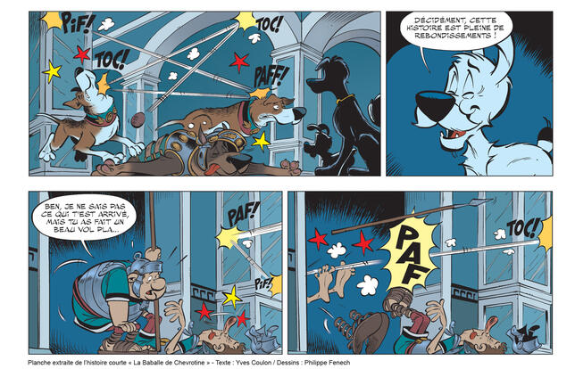 Ainsi commence l'album: "Nous sommes en 52 avant Jésus-Christ. Tout Lutèce est occupé par les Romains… Tout Lutèce ? Non ! Un petit groupe d’irréductibles animaux lutéciens menés par Idéfi x résiste encore et toujours à l’envahisseur. Et la vie n’est pas facile pour le général Labienus et la meute de chiens qui tentent de romaniser Lutèce…" Outre Idéfix, on croisera chiens, chats et oiseaux du nom de Turbine, Baratine, Voldenuix, Padgachix et Asmatix.