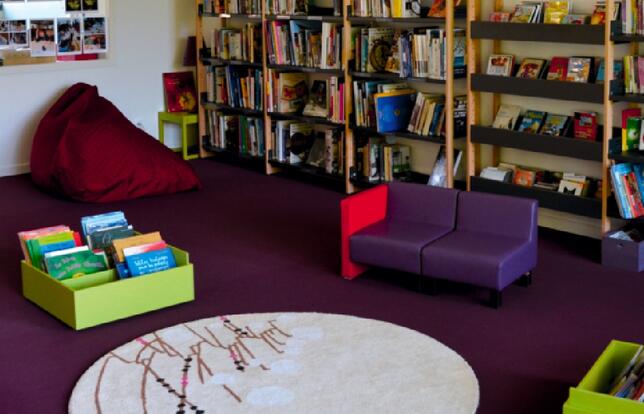 A Maure-de-Bretagne, une communauté de huit communes de 8 200 habitants située aux confins du département d’Ille-et-Vilaine, le principe a été poussé encore plus loin. La médiathèque est l’un des éléments du pôle social et culturel baptisé « le Chorus ». Inauguré en septembre 2012, il centralise les services d’action sociale, la PMI, un point information jeunesse, une halte-garderie, une crèche et la bibliothèque-ludothèque. Dès l’origine, les élus ont eu la volonté forte que les différentes structures travaillent ensemble et que le public circule de l’une à l’autre. A l’entrée du bâtiment, une grande banque d’accueil sert de central téléphonique pour l’intercommunalité : les personnels, dont les bibliothécaires, peuvent être amenés à répondre à toutes sortes de questions sur la vie scolaire, le logement, etc. Le hall, passage obligé pour accéder aux différents services, est vite devenu un lieu de rendez-vous : pendant le dernier tournoi de Roland-Garros, les usagers venaient regarder les matchs sur les deux postes de télévision qui y sont installés en sirotant un café pris au distributeur de boissons. La bibliothèque n’est ouverte que 20 heures par semaine, mais les visiteurs peuvent y accéder pendant la totalité des horaires d’ouverture du Chorus, feuilleter la presse en attendant un rendez-vous avec l’assistante sociale ou emprunter un document sur les automates de prêt. A part quelques vols de DVD, cette utilisation en libre-service ne pose pas de problème. « Les gens préfèrent venir pendant nos heures d’ouverture pour voir du monde », relève Emmanuelle Préau, responsable de la bibliothèque.
