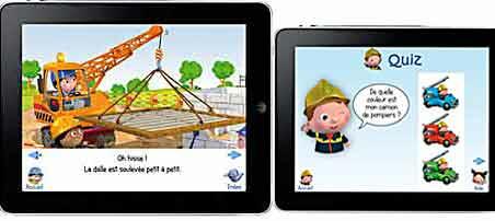 Les cinq titres - La grue de Lulu, Le camion de Léon, Le camion-poubelle de Marcel, Le tracteur de Peter, La tractopelle d'Axel - sont disponibles, au prix de 3,99 euros pour la version iPad et de 2,39 euros pour l'iPhone.