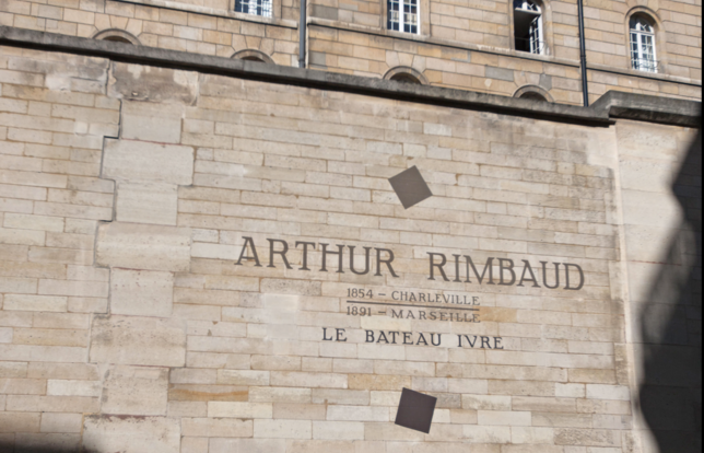 En revanche, si l'on veut lire du Rimbaud, et non du moindre, il faut se laisser glisser de la rue Racine à la rue Férou, comme un badaud un peu ivre. Là, sur le mur de ce qui fut autrefois le séminaire Saint-Sulpice et abrite, depuis 1922, le centre des impôts du 6e arrondissement (cela ne s'invente pas), l'artiste hollandais Jan Willem Bruins a calligraphié, le 14 juin 2012, les cent alexandrins du fameux « Bateau ivre » : « Comme je descendais les fleuves impassibles... », grâce au mécénat de la fon-dation Tegen-Beeld, de Leyde aux Pays-Bas. C'est de l'autre côté de la place, dans un estaminet, que le jeune poète a lu son texte pour la première fois à ses camarades, tous sans doute pas mal imbibés d'absinthe. Ce pourquoi le texte mural doit se lire de droite à gauche, en remontant la rue Férou, de Saint--Sulpice vers le Luxembourg : on a les « incroyables Florides » qu'on peut.