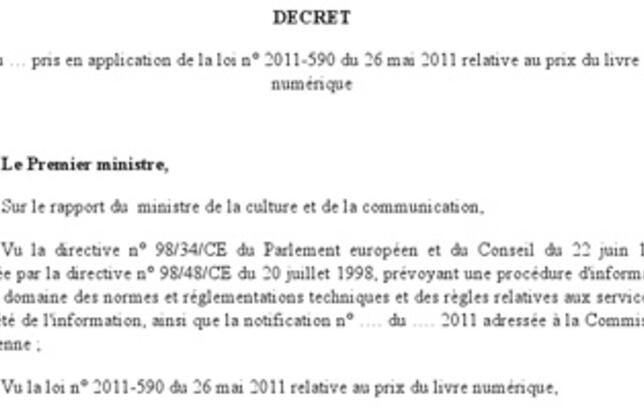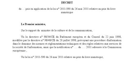 Le décret de la loi sur le prix du livre numérique consultable sur Google Docs