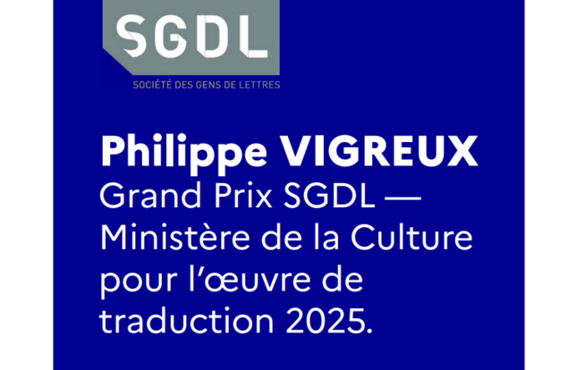 Le Grand prix de la traduction SGDL-ministère de la culture 2025 a été décerné à Philippe Vigreux. - Photo DR