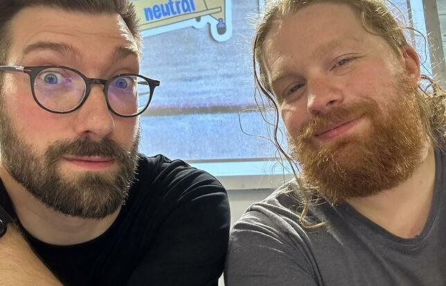 Julien et Quentin, bibliothécaires podcasteurs - Photo Deux connards dans un bibliobus