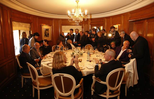 Quelques journalistes priviligiés sont dans le salon avant l'arrivée du lauréat - Photo Olivier Dion
