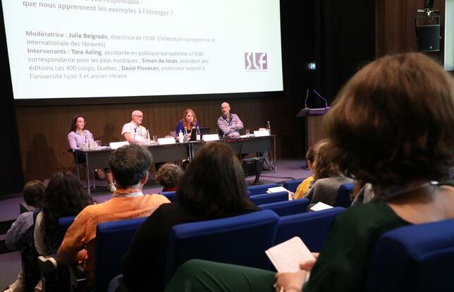 Les deux ateliers, remplis de librairies mais également d’éditeurs et d’autres professionnels du secteur, ont permis des vifs échanges sur le sujet. "Recevoir des caisses qui arrivent aux trois quarts vides est un non-sens", soutiennent par exemple plusieurs intervenants. La question est : que faire concrètement ? Certains ont déjà réduit leurs nombres de livraisons. Andrea, un libraire d’Angers, se limite à deux réassorts par semaine. Des idées sont également testées à l’étranger. Au Québec, Simon de Jocas s’est lié avec quelques éditeurs pour imprimer collectivement ses exemplaires. Ces solutions ont été imaginées après des discussions entre plusieurs acteurs de la chaîne de fabrication du livre. "Pour le bien de la planète, c’est mieux de laisser la concurrence de côté", résume Tora Asling, représentante des pays nordiques au sein de la Fédération européenne et internationale des libraires.