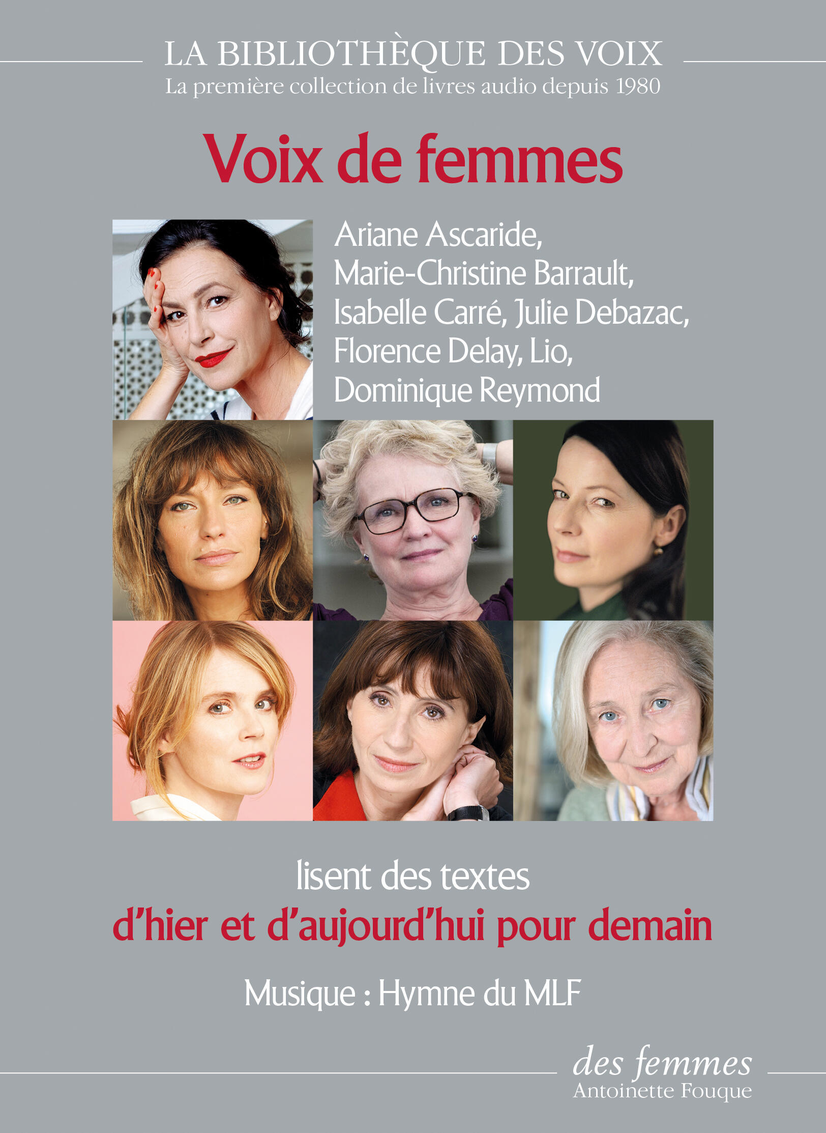 Avec la parution, le 7 mars, deVoix de femmes, recueil de textes historiques des luttes des femmes lus par des comédiennes et des chanteuses, les éditions Des femmes ont présenté une nouvelle maquette pour leur collection de livres audio, « La bibliothèque des voix ». « Nous avons aussi adopté un format plus proche de celui d'un livre et non d'un CD, comme auparavant », explique la codirectrice des éditions, Christine Villeneuve. L'éditeur a réintroduit une gamme de gris en fond, mais n'exclut pas d'utiliser d'autres couleurs dans l'avenir.