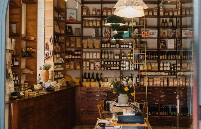 On en case des (belles) choses, dans 30 m² ! Chez Provisions, dans le VIe arrondissement marseillais, « tout est assez mélangé : l’épicerie, la cave à vins, et la partie librairie sur l’alimentation, la transition écologique, l’environnement », explique Jill Cousin, cofondatrice de cette librairie-épicerie, en 2021, avec Saskia Porretta. « On a ajouté une section féminisme qui est coincée entre la cave et l’artisanat », poursuit-elle. La sélection comprend aussi bien des livres de cuisine que des romans, des essais, des revues indépendantes, ainsi qu’un volet jeunesse sur ces mêmes thématiques, et une offre internationale, en anglais et en italien essentiellement. Un clin d’œil à l’histoire du lieu qui fut pendant plus de 70 ans la librairie internationale de la famille Maurel. « Nous sommes toutes les deux proches du milieu de l’édition, ce qui explique aussi notre envie de poursuivre l’histoire de cette librairie », retrace Jill Cousin, qui est par ailleurs autrice et journaliste. Depuis 2022, le binôme propose une cantine du midi en fin de semaine, avec l’aide d’une cheffe arrivée en juillet 2023. « Les quatre activités sont très équilibrées, assure Jill Cousin. C’est la magie du lieu : quelqu’un arrive ici en cherchant un essai féministe et repart aussi avec une bouteille de vin et un produit d’épicerie. » De quoi nourrir l’âme du lieu pendant longtemps encore.