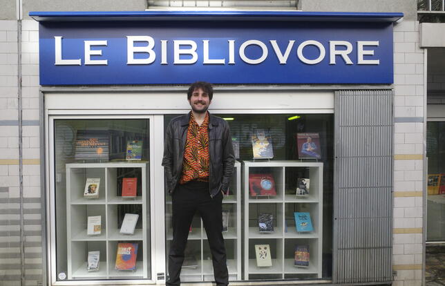 Nichée au pied d’un immeuble de Belleville, la nouvelle librairie parisienne Le Bibliovore pourrait facilement passer inaperçue. Pourtant, des regards curieux s'attardent. Fronts collés à la vitrine, ils tentent d’apercevoir l’intérieur de la boutique, intrigués par la promesse de livres vendus à trois euros l’unité, les quatre pour dix.