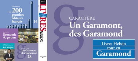 Pour commémorer les 450 ans de la mort du typographe Claude Garamont, le numéro 881 de Livres Hebdo, disponible ce vendredi 14 octobre est entièrement composé dans cette prestigieuse police de caractères.