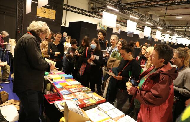 Une grande nouvelle pour certaines bibliothécaires du groupe, à l’instar de Catherine Honneur, venue de la Bibliothèque des Côtes-d'Armor : « Il peut nous arriver de passer à côté de certaines choses. Le Salon de Montreuil et ce parcours de rencontres peuvent justement remédier à ça. J’ignorais, par exemple, que Bruno Doucey avait une collection de poésie pour les ados. Ça me permet d’imaginer des choses comme une médiation adossée au Printemps des poètes ».