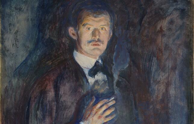 Ses lectures de Nietzsche comme sa vie amoureuse, sa mélancolie ont nourri sa palette et innervé son pinceau. Reviennent dans l’œuvre peinte ou gravée tels des spectres la figure qui crie son mal être (Tête du « Cri » et mains levées, crayon sur papier vélin, 1898) ; la femme au baiser cannibale (Vampire, 1895), l’homme rongé par la jalousie, le couple aliéné (Deux êtres humains. Les solitaires, 1906-1907), des Jeunes filles sur le pont (1927), son autoportrait fumant une cigarette ou au bras de squelette (1895) ou après une nuit blanche (1920). Paysage de fjords rougeoyants, rue grouillante d’anxiété urbaine ou huis-clos asphyxiant, campagne imbue d’une nostalgie d’un au-delà du réel… les toiles dégagent une lumière mystérieuse. L’un des premiers critiques du travail de Munch et ami, l’écrivain polonais Stanislas Przybyszewski, qualifie son art de « naturalisme mental ». Car il s’agit bien pour le peintre de la Frise de la vie, cycle composé de 22 tableaux et présenté à la Sécession de Berlin en 1902, d’exprimer la vérité des choses de l’intérieur : « Nous voulons autre chose que la simple photographie de la nature. Nous ne voulons pas non plus peindre de jolis tableaux à accrocher aux murs du salon. Nous voudrions un art qui nous prend et nous émeut, un art qui naîtrait du cœur. »