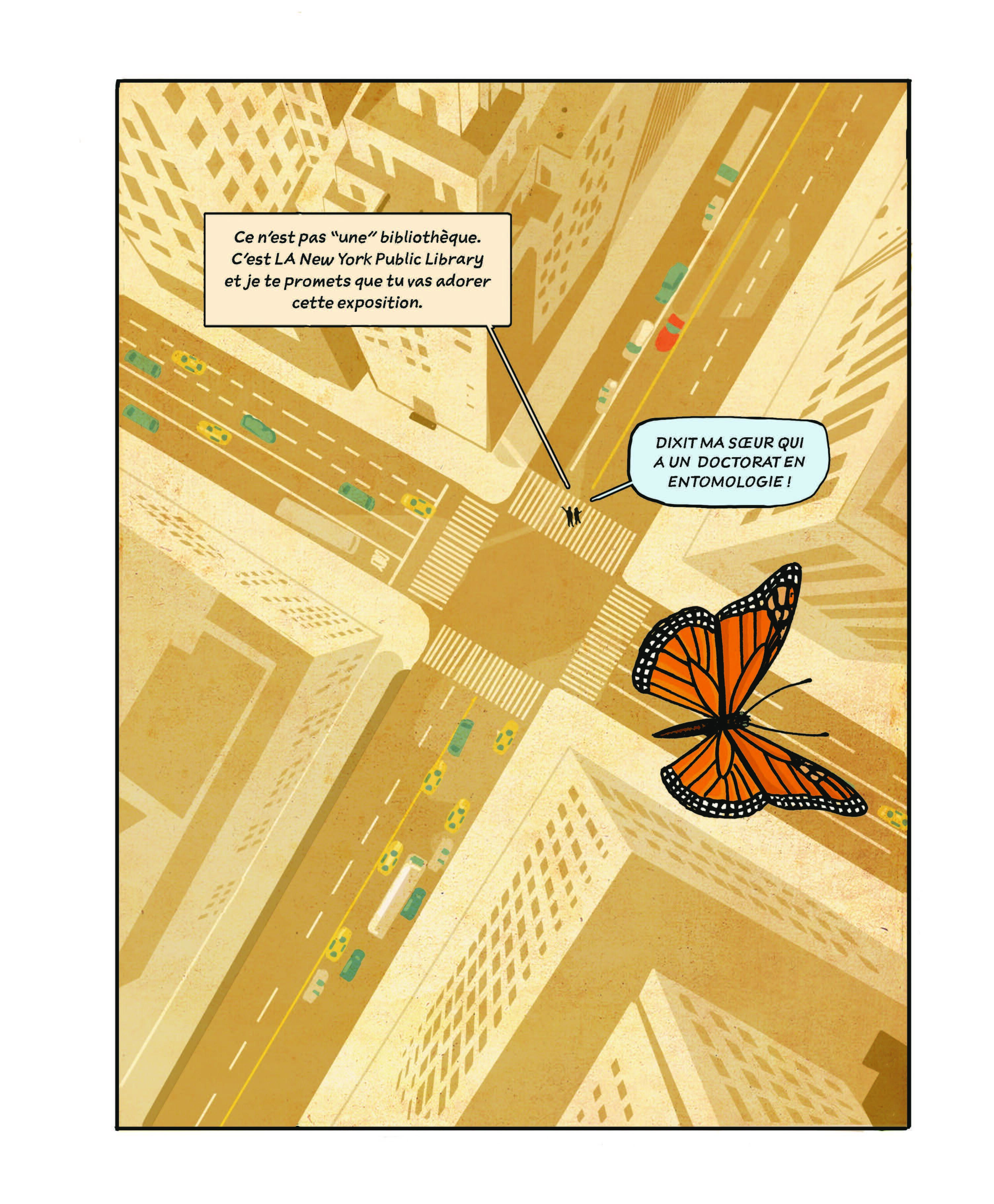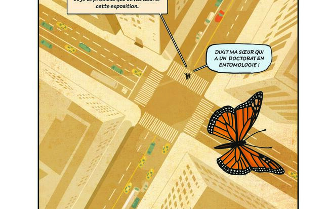 L'auteur américain Peter Kuper, par ailleurs collaborateur du New Yorker et de Charlie Hebdo, avait déjà laissé entrevoir son intérêt pour les insectes dans le magnifique Ruines (Çà et Là, 2015), où la migration des papillons monarques venait se superposer à une histoire de couple. Dans Insectopolis, les insectes sont rois, ils ont la parole, et Kuper nous immerge dans leur monde. Ludique, éducatif, ce roman graphique étonnant propose plusieurs niveaux de lecture. On peut le lire en se concentrant sur la fameuse exposition, représentée en arrière-plan, ou bien en se laissant entraîner par les dialogues et les commentaires des insectes. Abeilles, bousiers - « le premier animal sur Terre à se repérer grâce aux étoiles » -, mouches, mantes religieuses, cochenilles, fourmis ont tous beaucoup de choses à raconter : leurs particularités, leur utilité, leurs liens avec les humains... Peter Kuper construit des planches inventives et variées, où il entremêle de nombreux rappels historiques, des anecdotes, des portraits des pères et mères de l'entomologie et de l'écologie - de William Kirby à Rachel Carson -, des références culturelles - on croise le peintre de la dynastie Ming Shen Zhou, Franz Kafka, Osamu Tezuka ou encore Winsor McCay, le père de Little Nemo, qui réalisa un dessin animé sur les moustiques. Le dessin minutieux, tout en nuances de bleu et d'orangé, se nourrit d'une riche iconographie dont le traitement n'est pas sans rappeler Jens Harder et son très beau Alpha. Kuper dote ses bestioles d'un humour faussement naïf qui rend la lecture d'autant plus plaisante. Insectopolis est une fascinante introduction à un monde qui ne l'est pas moins, doublée d'un engageant plaidoyer pour la biodiversité. Le projet était une gageure, mais avec cet album Peter Kuper fait mouche.