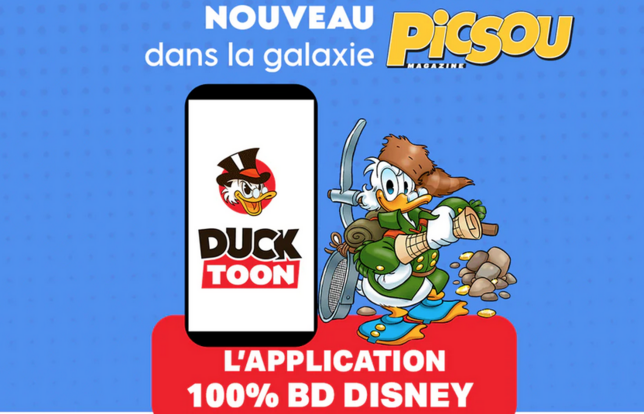 Le webtoon a le vent en poupe. Après Ankama, Dupuis ou encore Delcourt, c’est désormais chez Picsou Magazine que débarque le format digital de la BD avec l’application Ducktoon, a annoncé le bimestriel dans un communiqué en date du mercredi 10 mai. Les aventures de Mickey, Picsou, Donald et des trois neveux se poursuivront donc sur les écrans de téléphone à partir du 12 juin sur Google Play et App Store. Elles sont déjà disponibles en pré-abonnement sur le site dédié et édité par le groupe médias Unique Heritage Media.