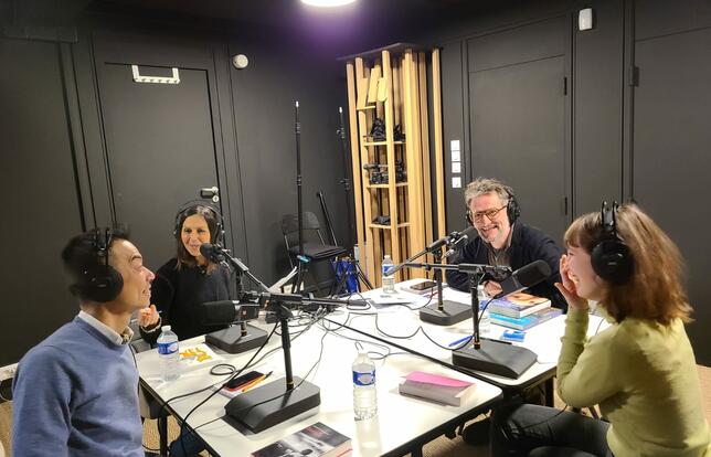 L'équipe de Livres Hebdo dans le studio de création du podcast "Les Voix du livre" - Photo Livres Hebdo