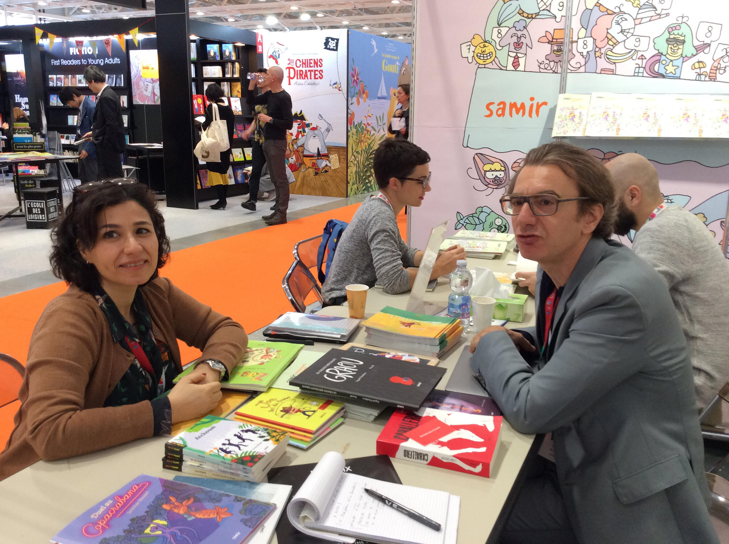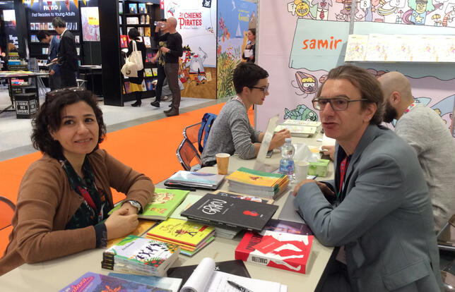 Joanna El Mir et Marwan Abdo-Hanna à la Foire du livre de jeunesse de Bologne 2019. - Photo Claude Combet/LH