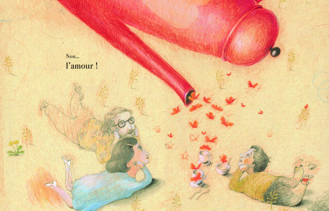 Trois fois rien. Un petit garçon énumère les gens et les choses qu'il aime, son père, sa mère mais il oublie toujours quelque chose. Les clés ? Un parapluie ? Non ! L'amour et le sourire. Plus loin, il a encore oublié les autres gens. Et voilà que toutes les branches d'un arbre se remplissent de gens, petits, grands, jeunes, vieux. Sur une page, on voit seulement des pieds de toutes les tailles pendre dans le vide, des pieds nus ou avec des chaussures à talons. Sur une autre, on voit une petite blonde à robe verte courir avec une grande fleur à la main et un bonhomme rêvasser sur un nuage. Quelle bonne idée d'avoir réédité cet album simple et gai qui célèbre la vie dans sa diversité. Le dessin de Joanna Concejo donne de la joie avec trois fois rien, des crayons de couleur et du papier de récupération.