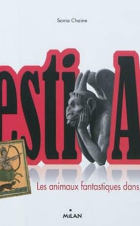 Ouvrage avec des dépliants et des flaps présentant 32 oeuvres d'art de l'Antiquité à aujourd'hui sur la thématique des animaux fantastiques : sphinx, taureau ailé à tête humaine, chimère, centaure, griffon, sirène, Phénix...