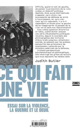 Ce bilan de la décennie des guerres menées par les USA insiste sur l'impossibilité du deuil à l'heure de la guerre virtuelle. L'auteure appelle à une réorientation de la pensée politique en faveur de la reconnaissance de la précarité radicale des vies humaines, afin d'en assurer la protection. A cette fin, J. Butler croise les perspectives psychanalytique (M. Klein) et philosophique (E. Levinas). ©Electre 2023