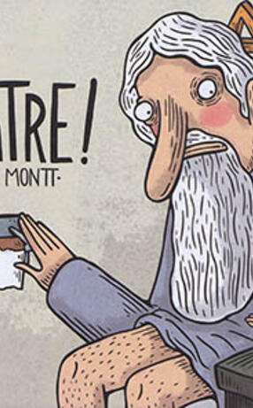 150 dessins humoristiques mettant en scène Dieu, le diable, des vaches folles, des microbes dépressifs, des superhéros qui discutent au bistrot et des hommes des cavernes drogués aux réseaux sociaux. ©Electre 2019
