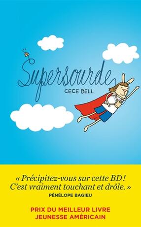Rendue sourde par une méningite à 4 ans, Cece tente de se faire une place dans le monde des entendants et pour oublier sa prothèse auditive s'imagine en superhéroïne, Supersourde. Récit autobiographique. Eisner award 2015 du meilleur album pour enfants. ©Electre 2015
